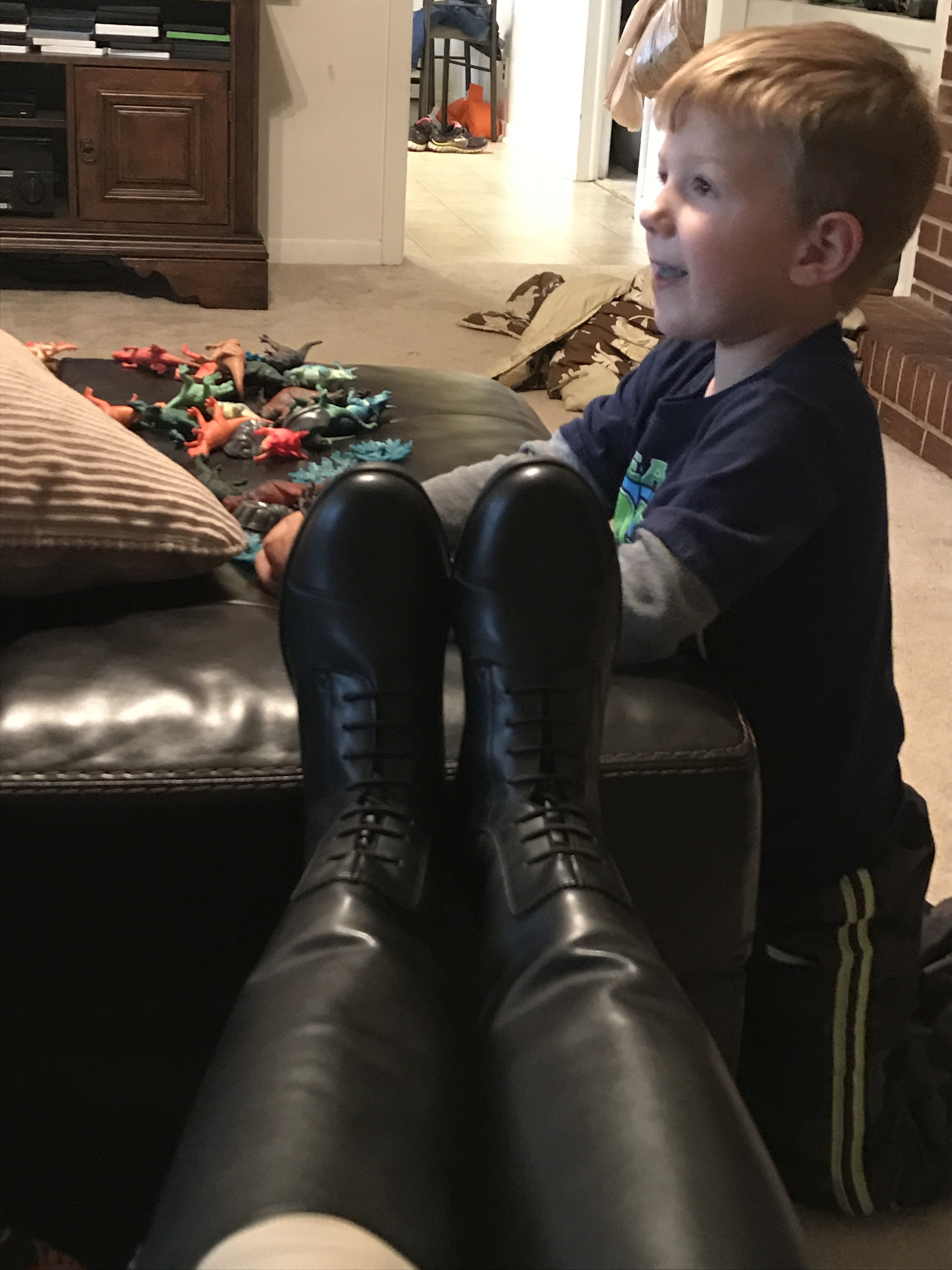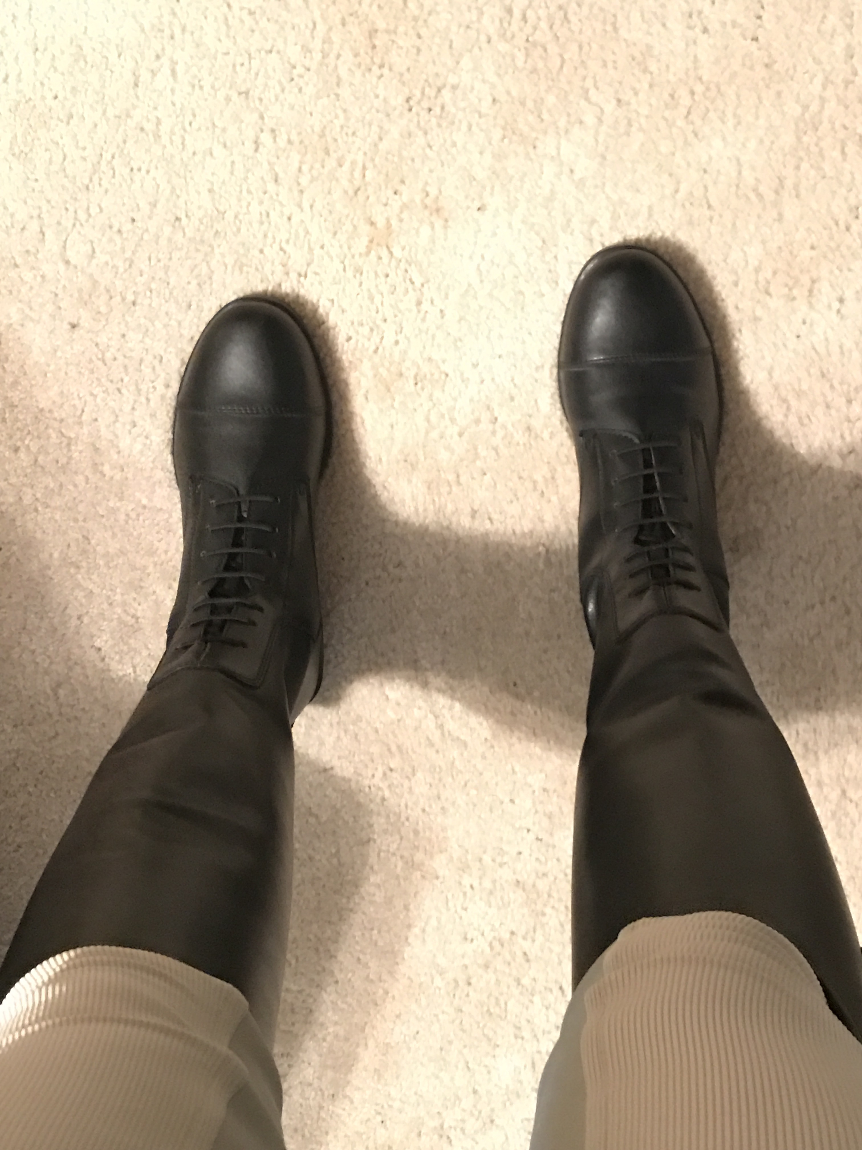 Armed with all the knowledge I went to the tack store. I wanted a 50″ based on what I measured, but they lady talked me into a 44″ based on the adage of adding 20″ to the dressage. The dressage has super long billets and the jump average short ones, but she owns the shop so I believed her.