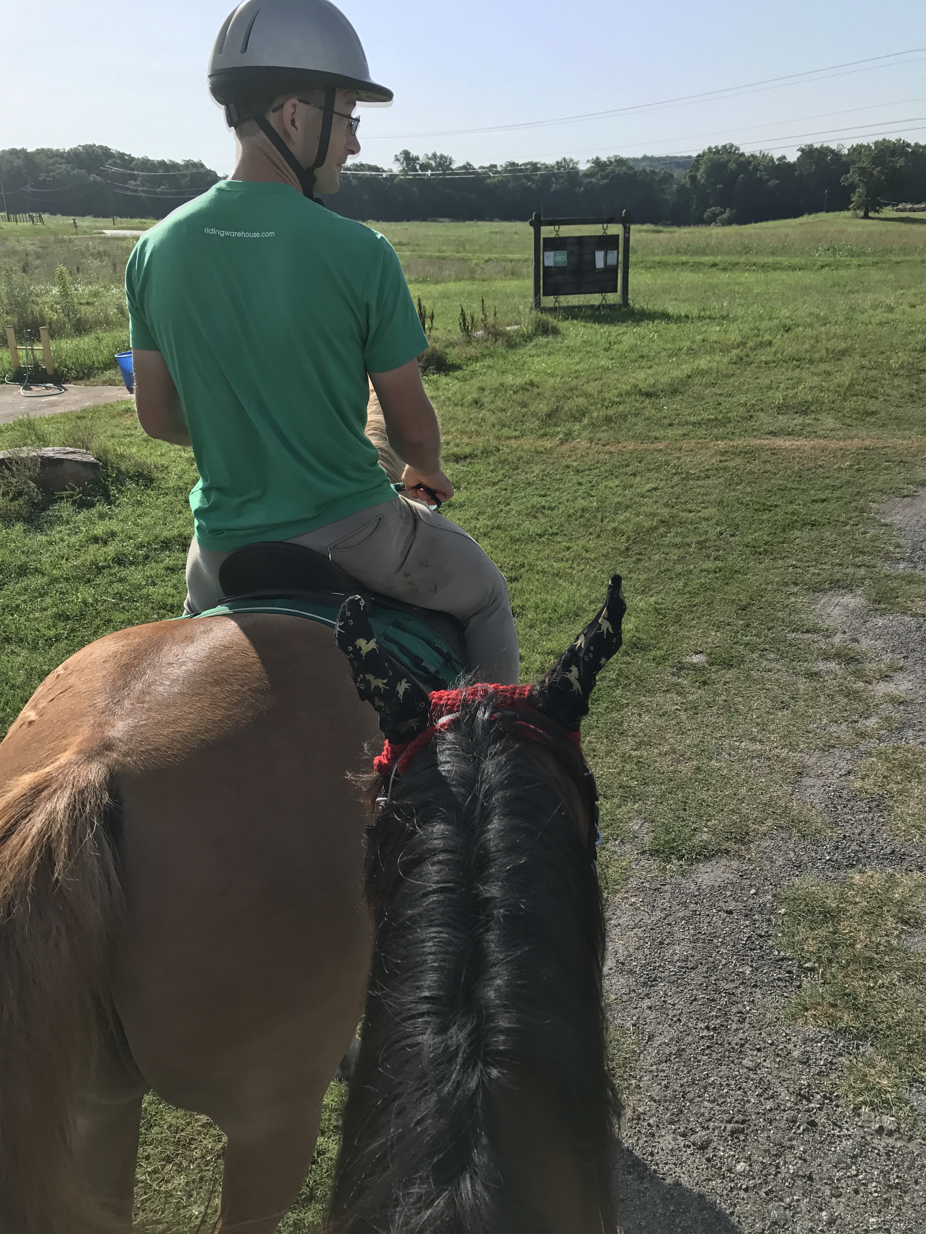 I let her walk the entire first mile to loosen up. She was extremely lookie at everything, but didn’t pull any nasty stunts and mostly kept her pace. For my part, I used this first mile to work on halt transitions. I really need to remember to do this more often. When she si all nervous at the start, making her work through halts gets her to relax and think which is really beneficial.